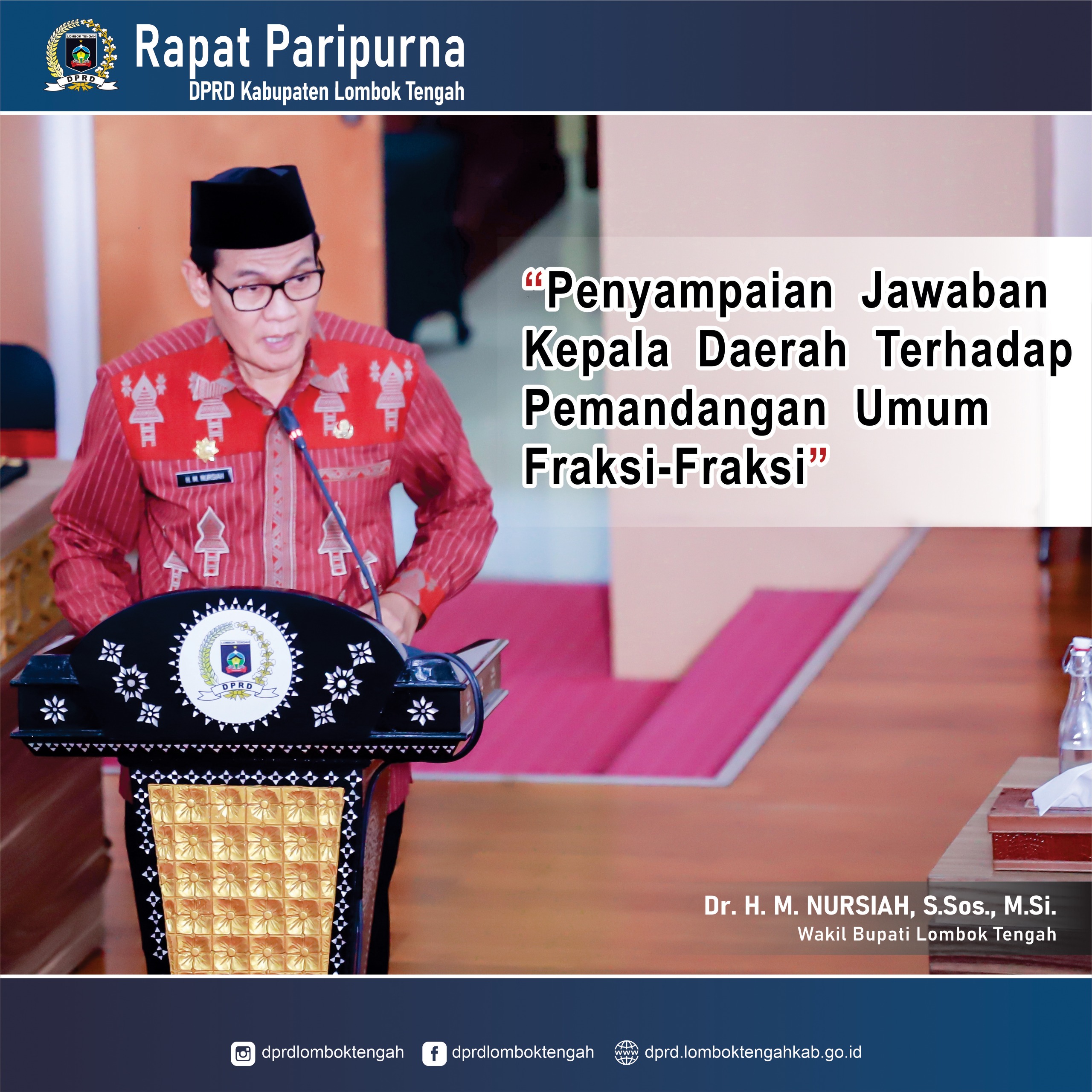 Dalam jawabannya, Wakil Bupati Lombok Tengah menyampaikan apresiasi dan komitmen pemerintah daerah untuk menindaklanjuti berbagai catatan strategis dari fraksi-fraksi sebagai bagian penting dalam mewujudkan regulasi daerah yang lebih efektif, responsif, dan sesuai kebutuhan pembangunan daerah.