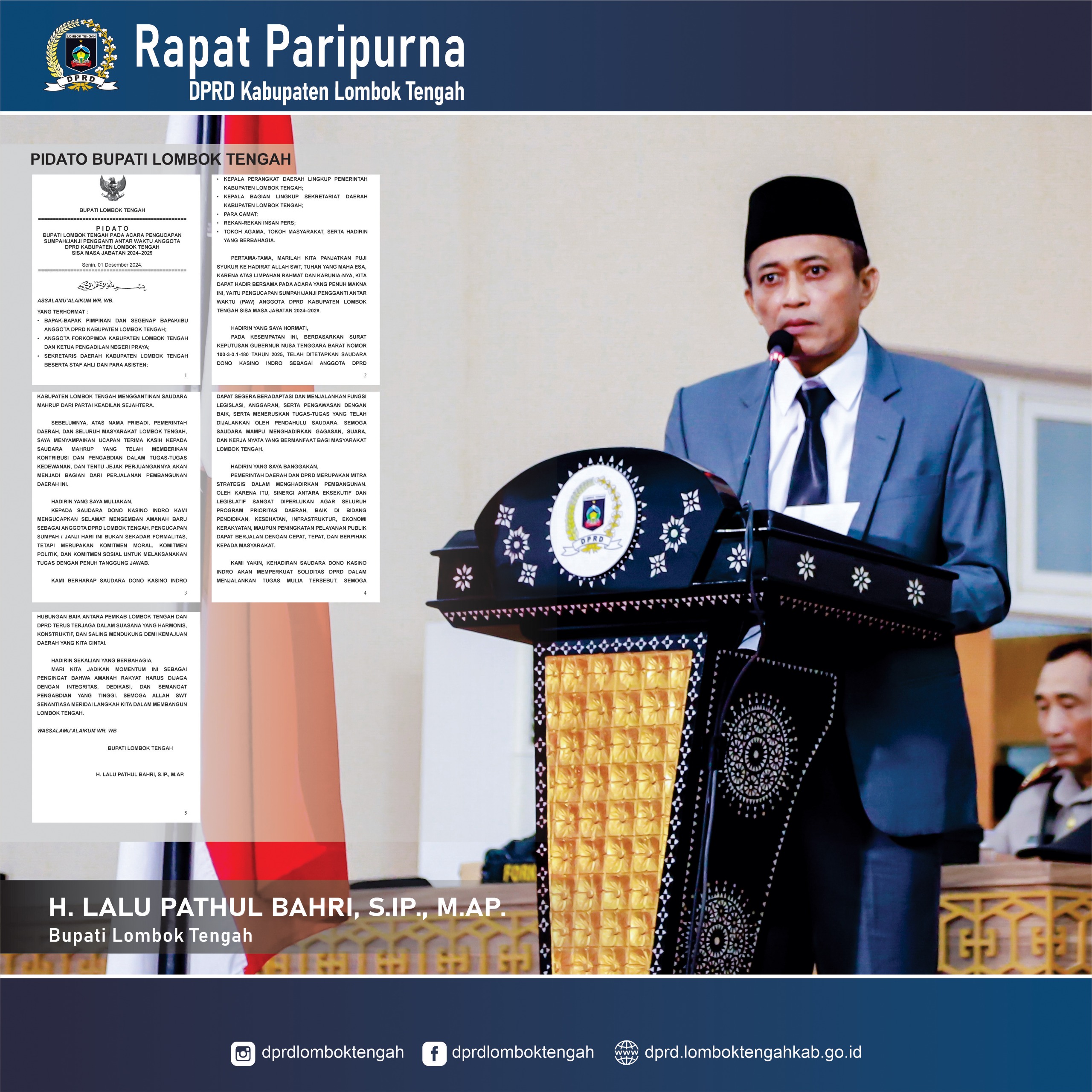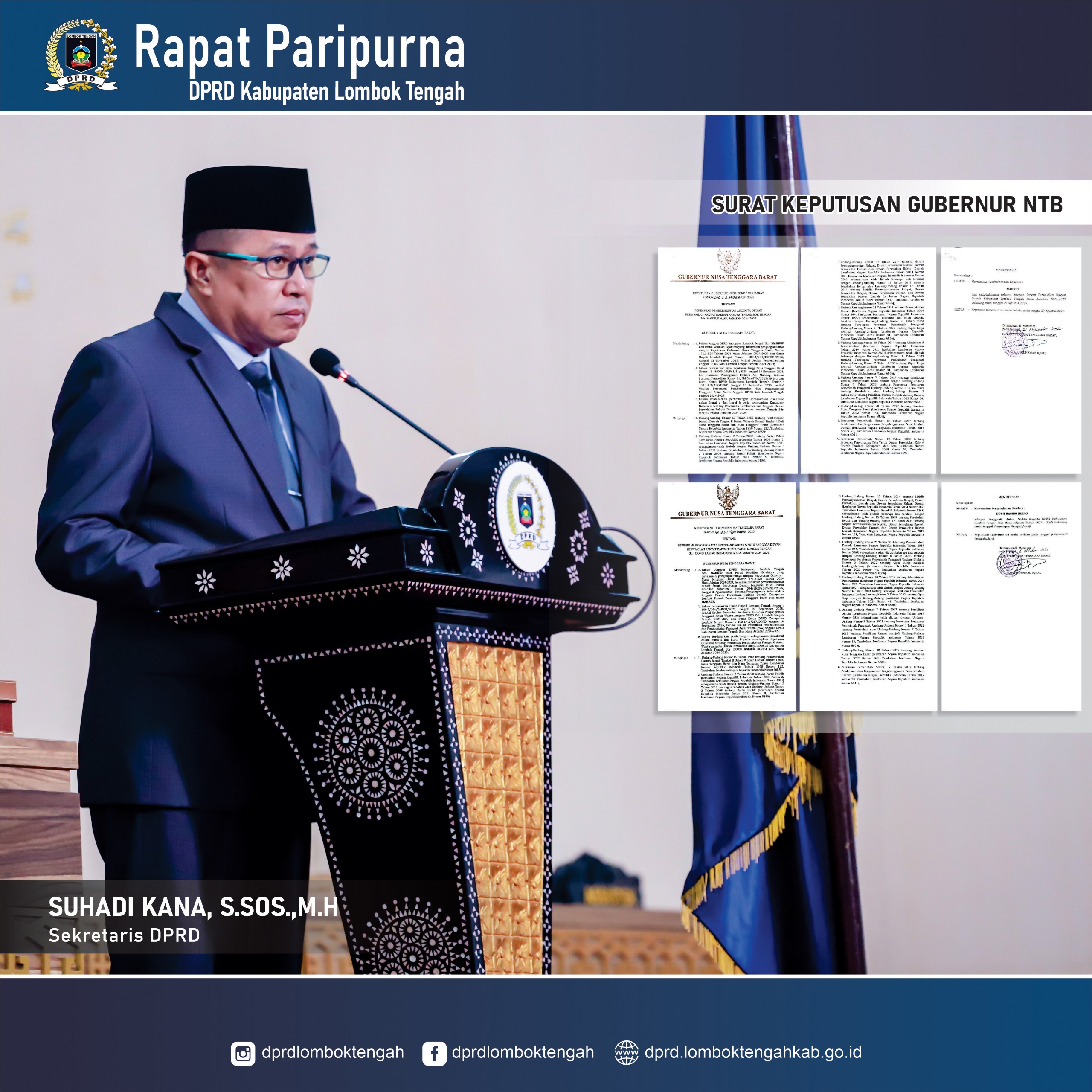 Agenda paripurna dimulai dengan pembacaan Surat Keputusan Gubernur Nusa Tenggara Barat tentang peresmian pemberhentian anggota DPRD Kabupaten Lombok Tengah Sdr. MAHRUP, masa jabatan 2024–2029 dari Partai Keadilan Sejahtera (PKS). Pembacaan dilanjutkan dengan Surat Keputusan Gubernur Nusa Tenggara Barat tentang peresmian pengangkatan Pengganti Antar Waktu (PAW) Anggota DPRD Kabupaten Lombok Tengah Sdr. DONO KASINO INDRO sisa masa jabatan 2024–2029. Kedua keputusan tersebut dibacakan secara resmi oleh Sekretaris DPRD Kabupaten Lombok Tengah, Suhadi Kana, S.Sos., M.H.