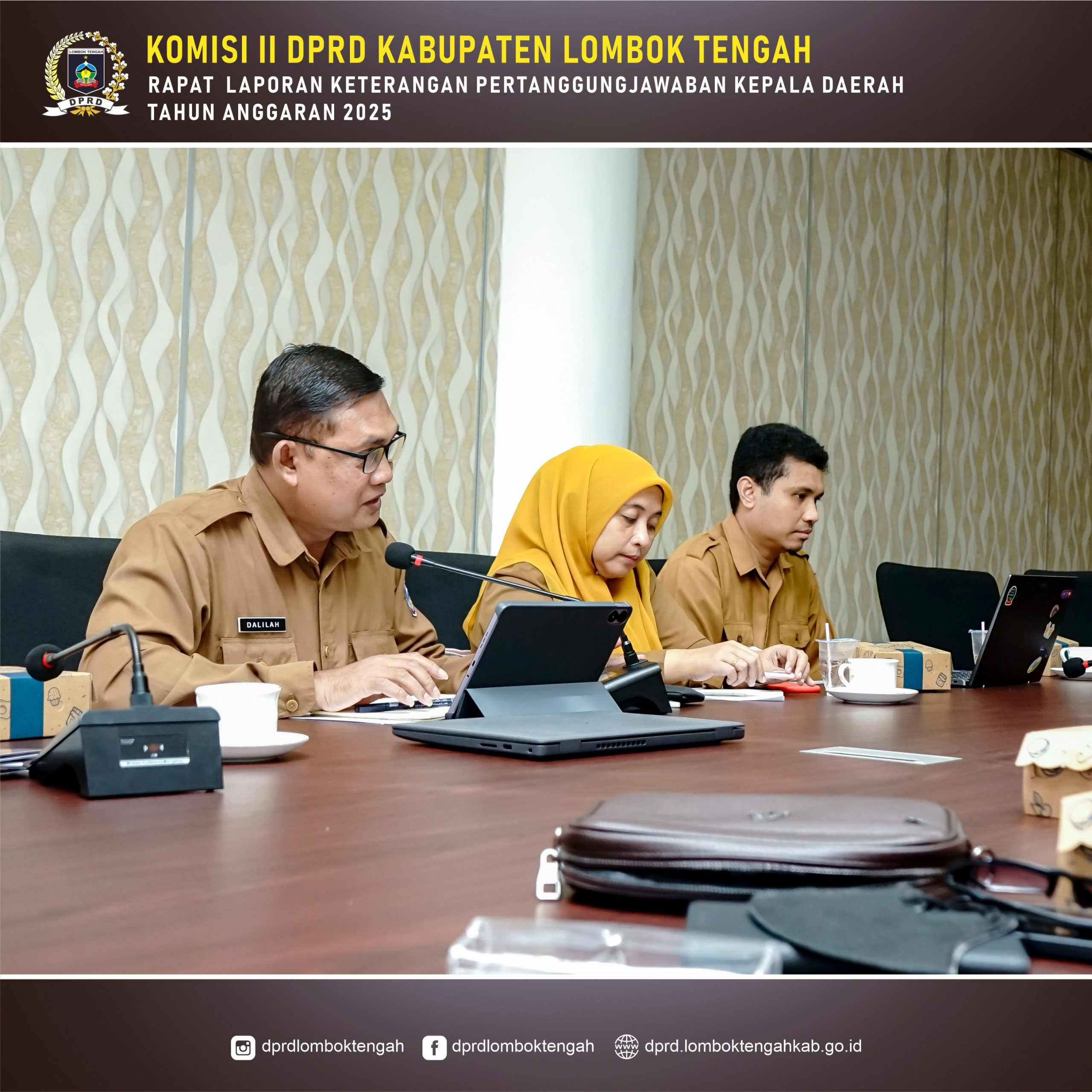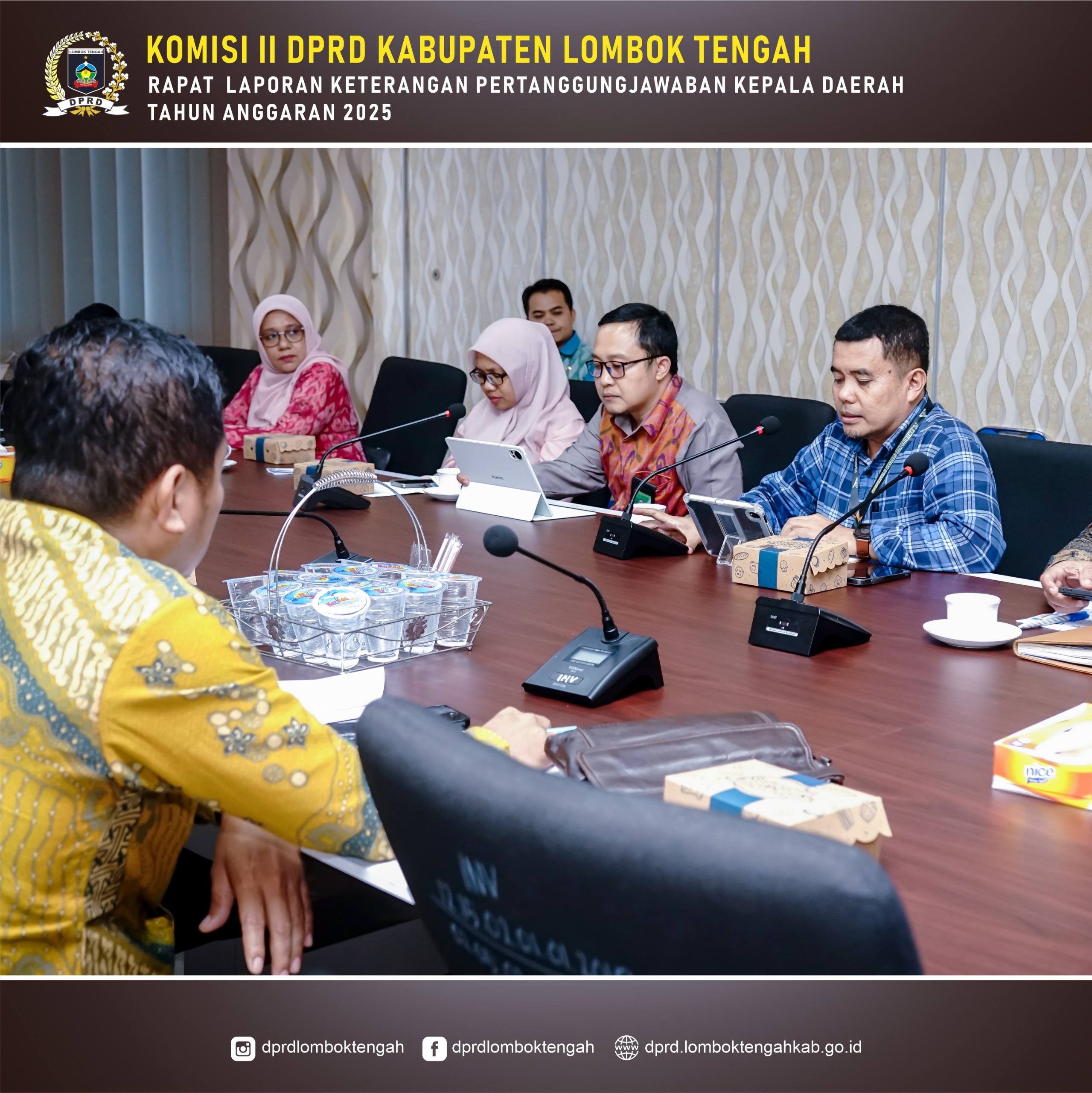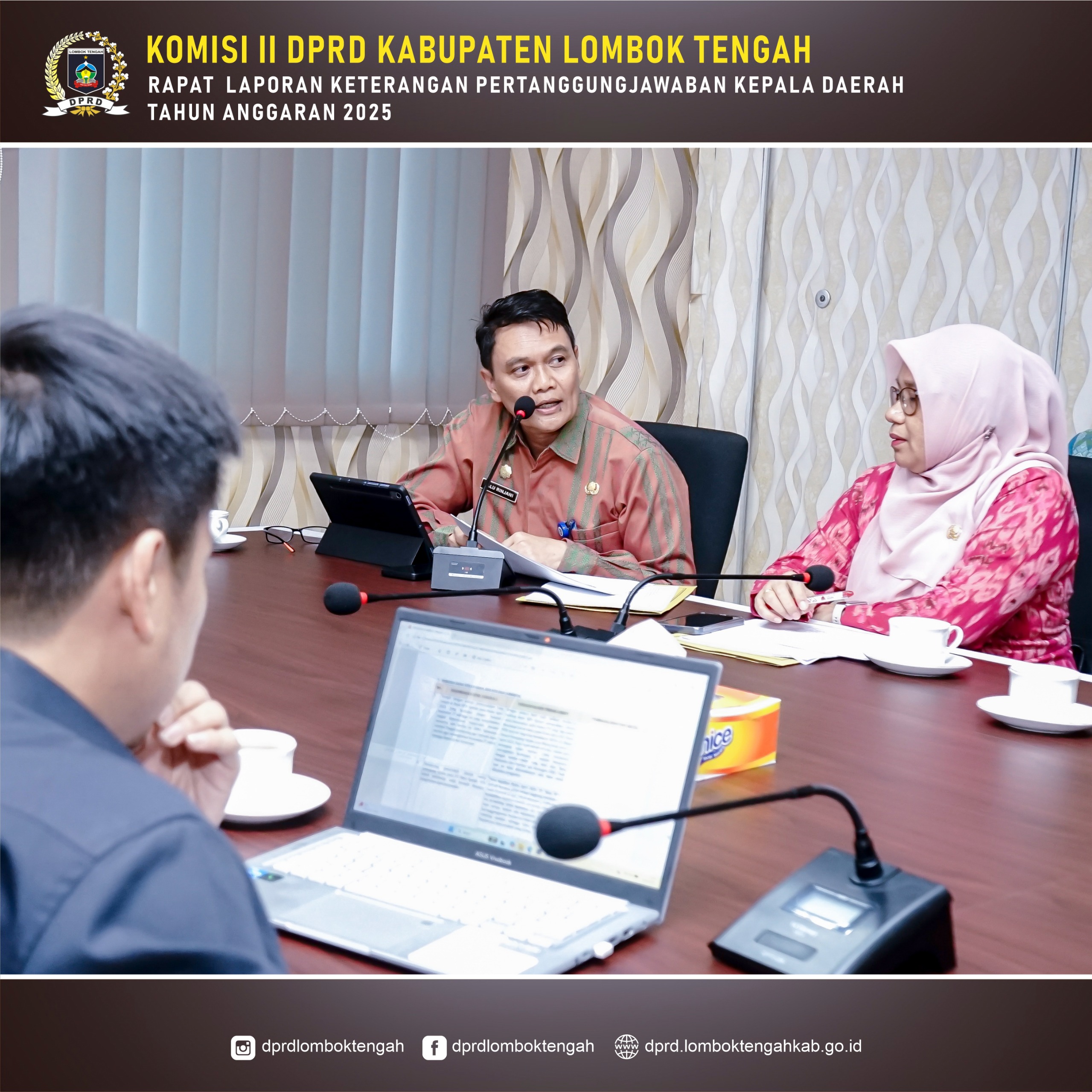 Dalam rangka melaksanakan fungsi pengawasan terhadap penyelenggaraan pemerintahan daerah, Komisi II DPRD Kabupaten Lombok Tengah bersama mitra kerja melaksanakan kegiatan rapat konsultasi terkait pembahasan Laporan Keterangan Pertanggungjawaban (LKPJ) Pelaksanaan APBD Kabupaten Lombok Tengah Tahun Anggaran 2025.