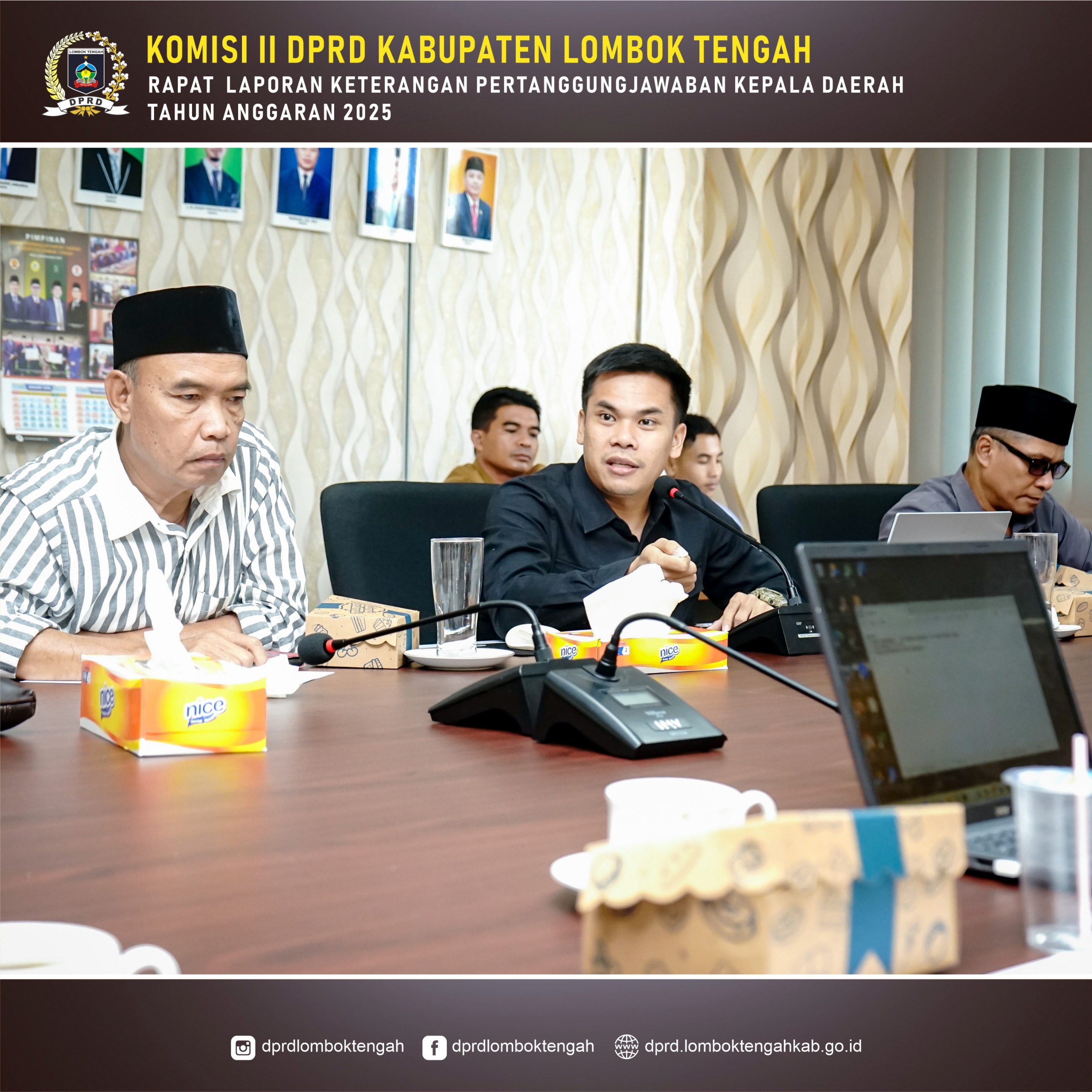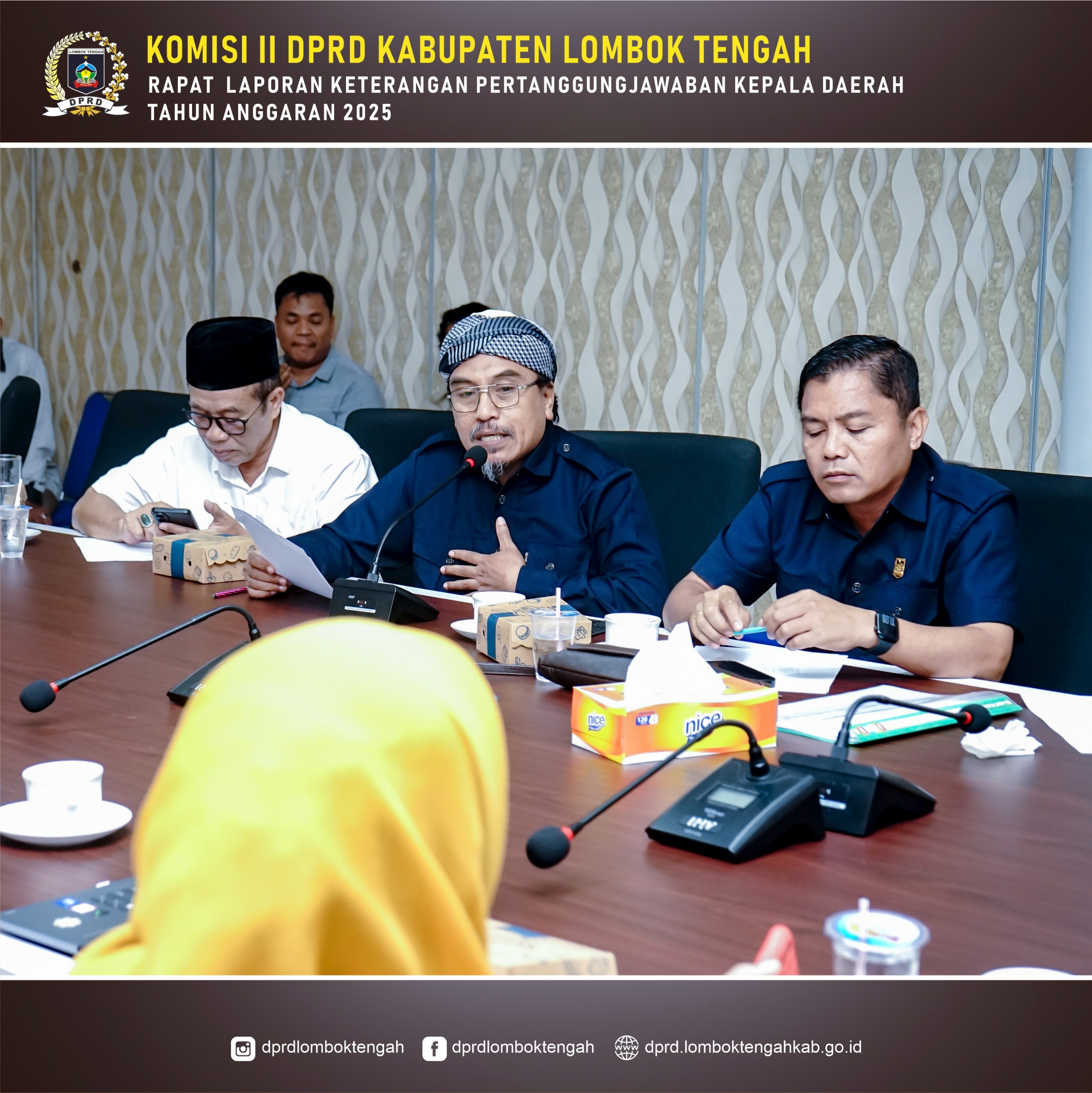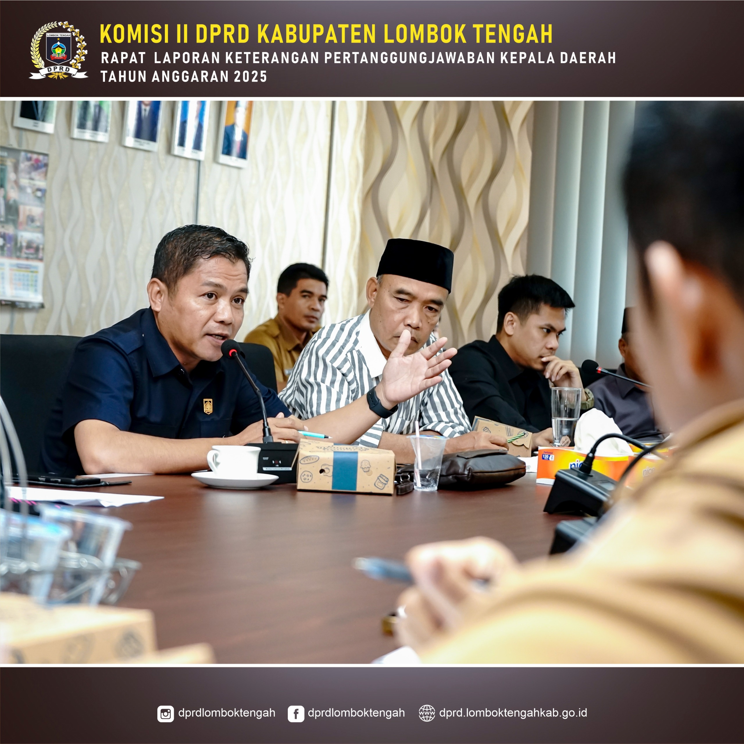 Dalam rangka melaksanakan fungsi pengawasan terhadap penyelenggaraan pemerintahan daerah, Komisi II DPRD Kabupaten Lombok Tengah bersama mitra kerja melaksanakan kegiatan rapat konsultasi terkait pembahasan Laporan Keterangan Pertanggungjawaban (LKPJ) Pelaksanaan APBD Kabupaten Lombok Tengah Tahun Anggaran 2025.