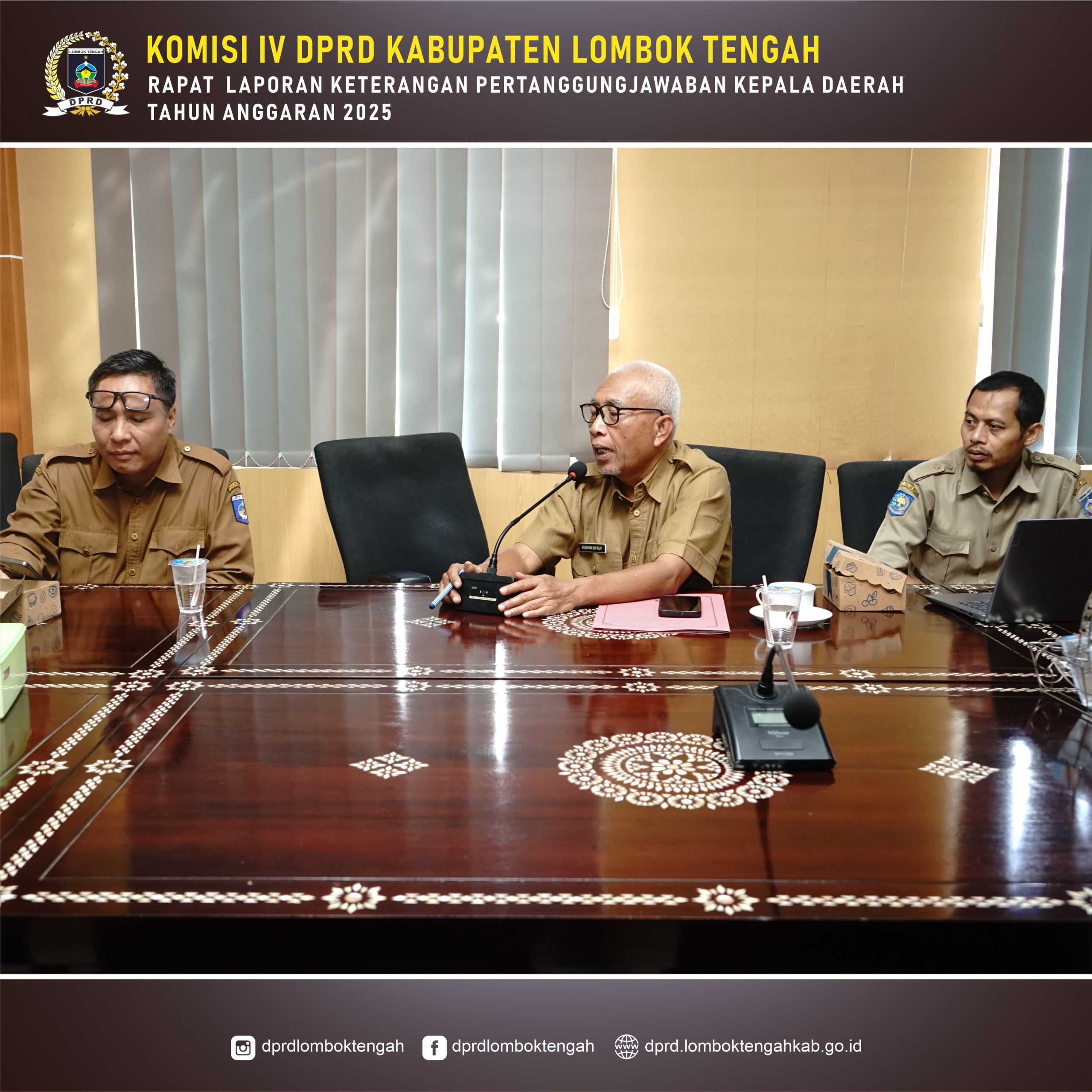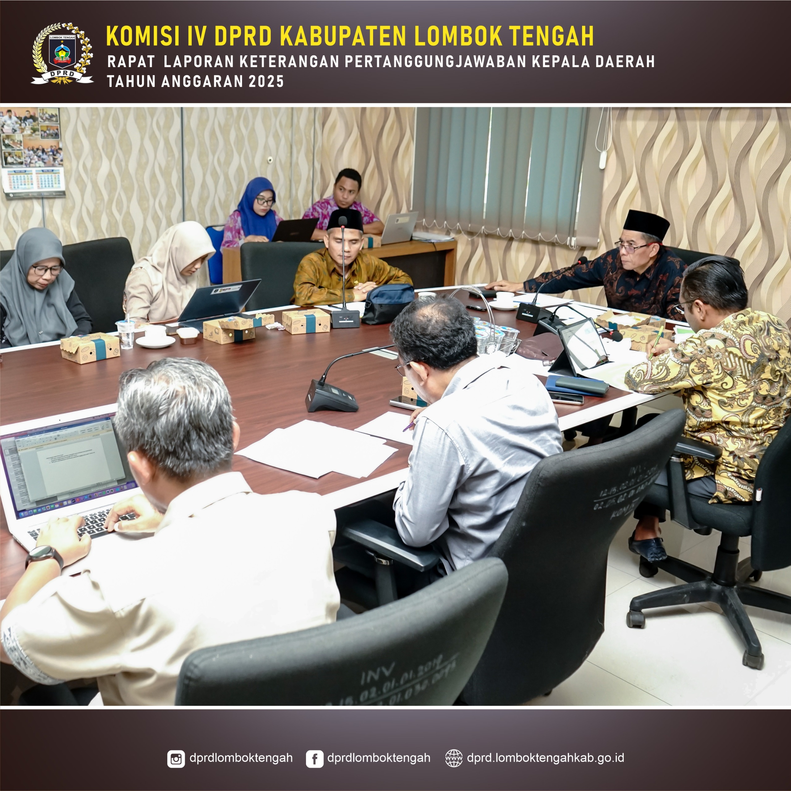 Dalam rangka pembahasan Laporan Keterangan Pertanggungjawaban (LKPJ) Pelaksanaan APBD Kabupaten Lombok Tengah Tahun Anggaran 2025, Komisi IV DPRD Kabupaten Lombok Tengah yang diketuai oleh H. M. Mayuki, S.Ag bersama seluruh anggota Komisi IV melaksanakan kegiatan rapat konsultasi dengan mitra kerja Komisi IV.